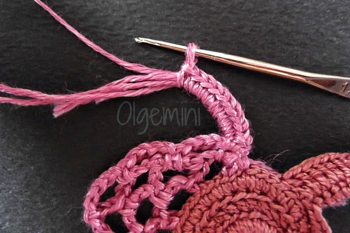 Соединить с первой петлёй 1 столбиком без накида, получив таким образом кольцо. Повторить те же действия ещё 2 раза.